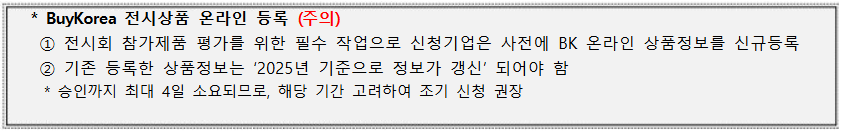 지원대상 : 25년 해외에서 개최되는 전문전시회에 개별참여하는 국내 중소, 중견기업
